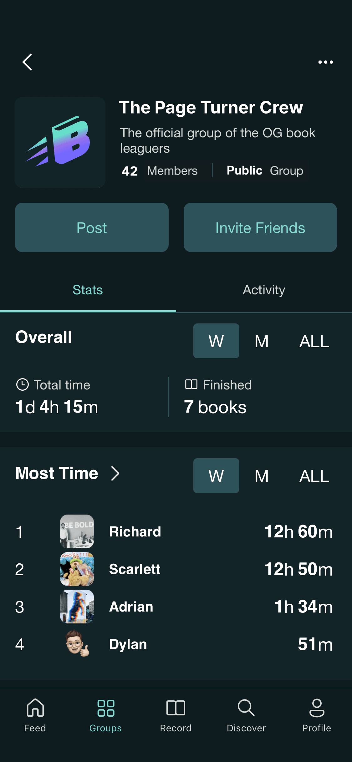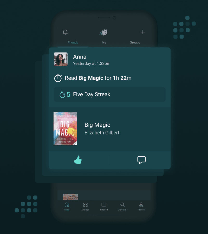 On Book League, readers can track how much they read, cheer on their friends' progress and join reading groups. Whether someone is motivated by comraderie or competition, we built this app to help them achieve their reading goals.