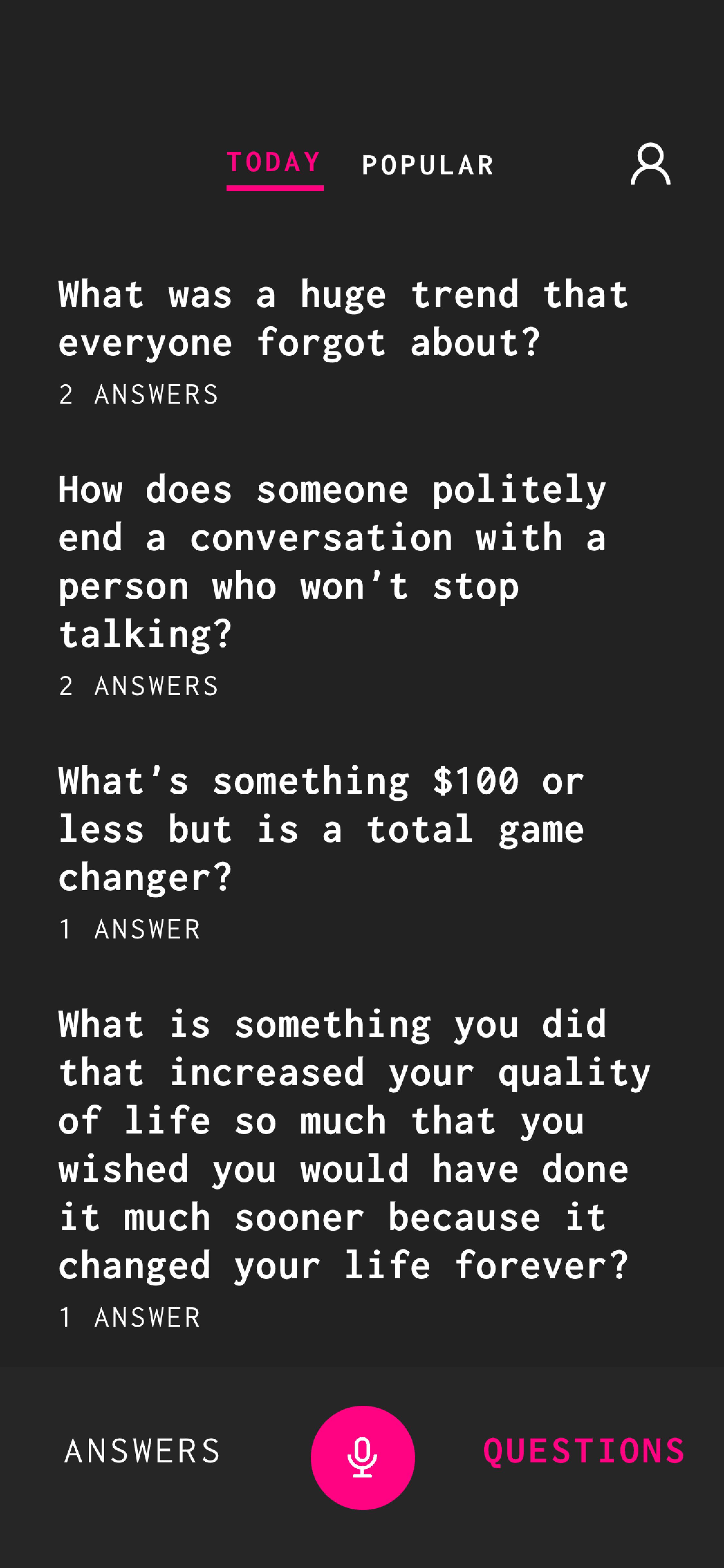 and thought-provoking questions, and listen to answers from people