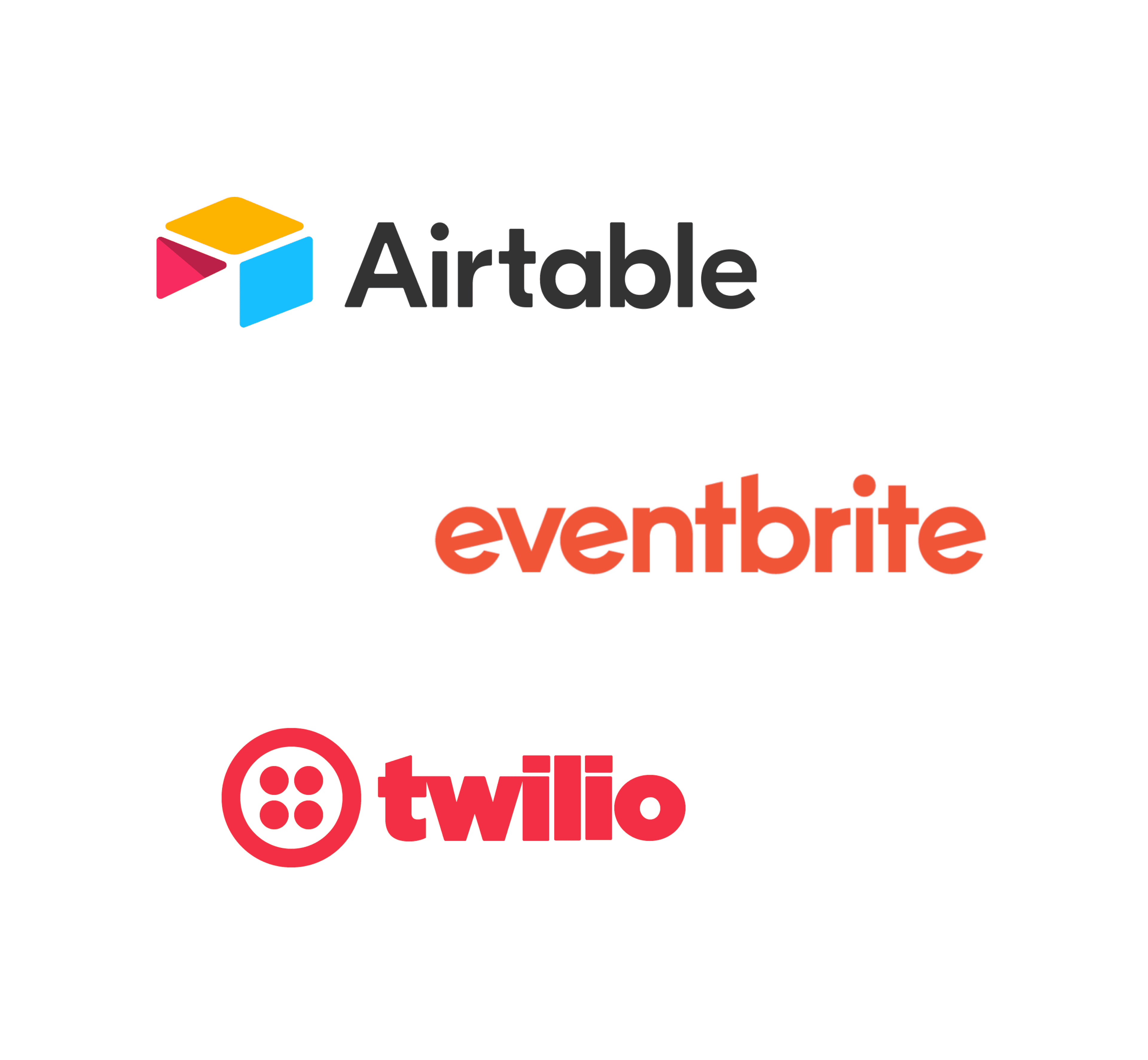 We pulled together HereNow's existing usage of Airtable and Eventbrite and added a Twilio integration, all running through their new centralized customer and event CRM.