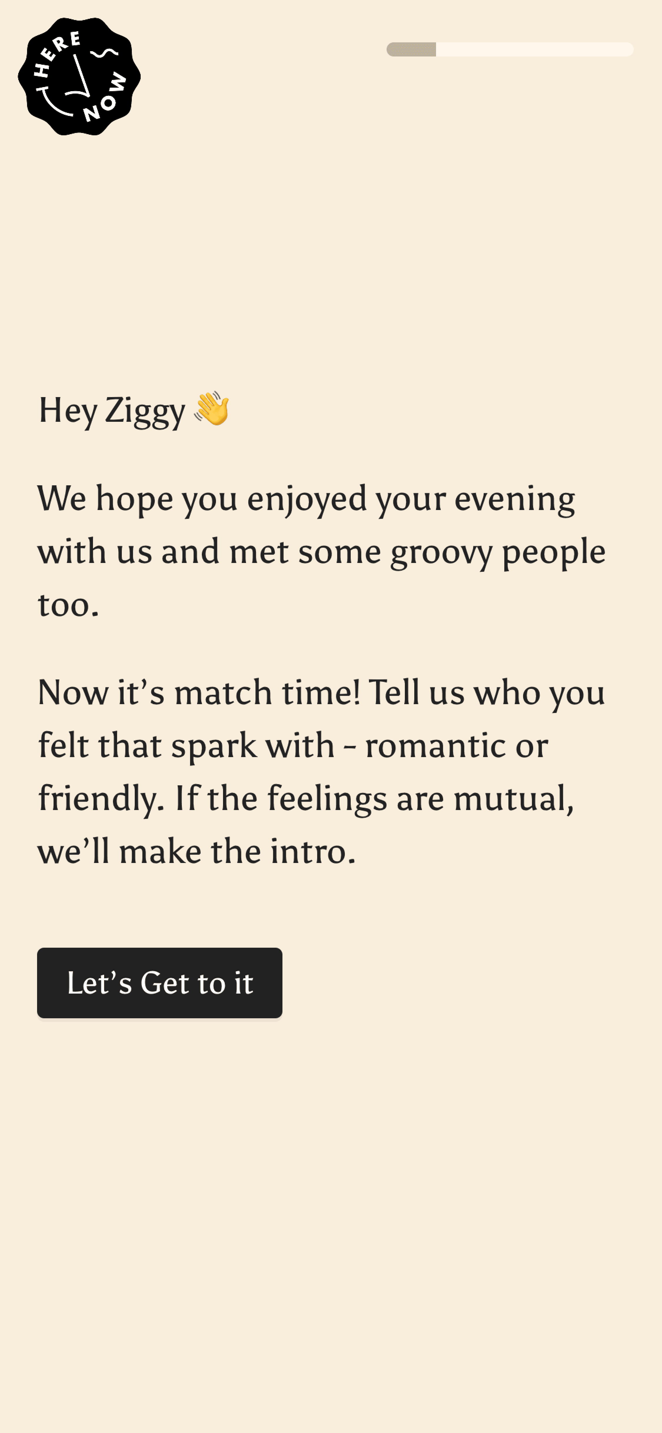 We worked with HereNow, a company that designs unique IRL experiences where people can spark new friendly or romantic relationships, to automate their user management, matching, and feedback collection.