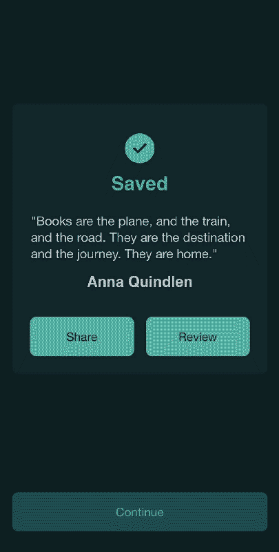 In this moment, users are also given an inspiring quote and an opportunity to share the app.